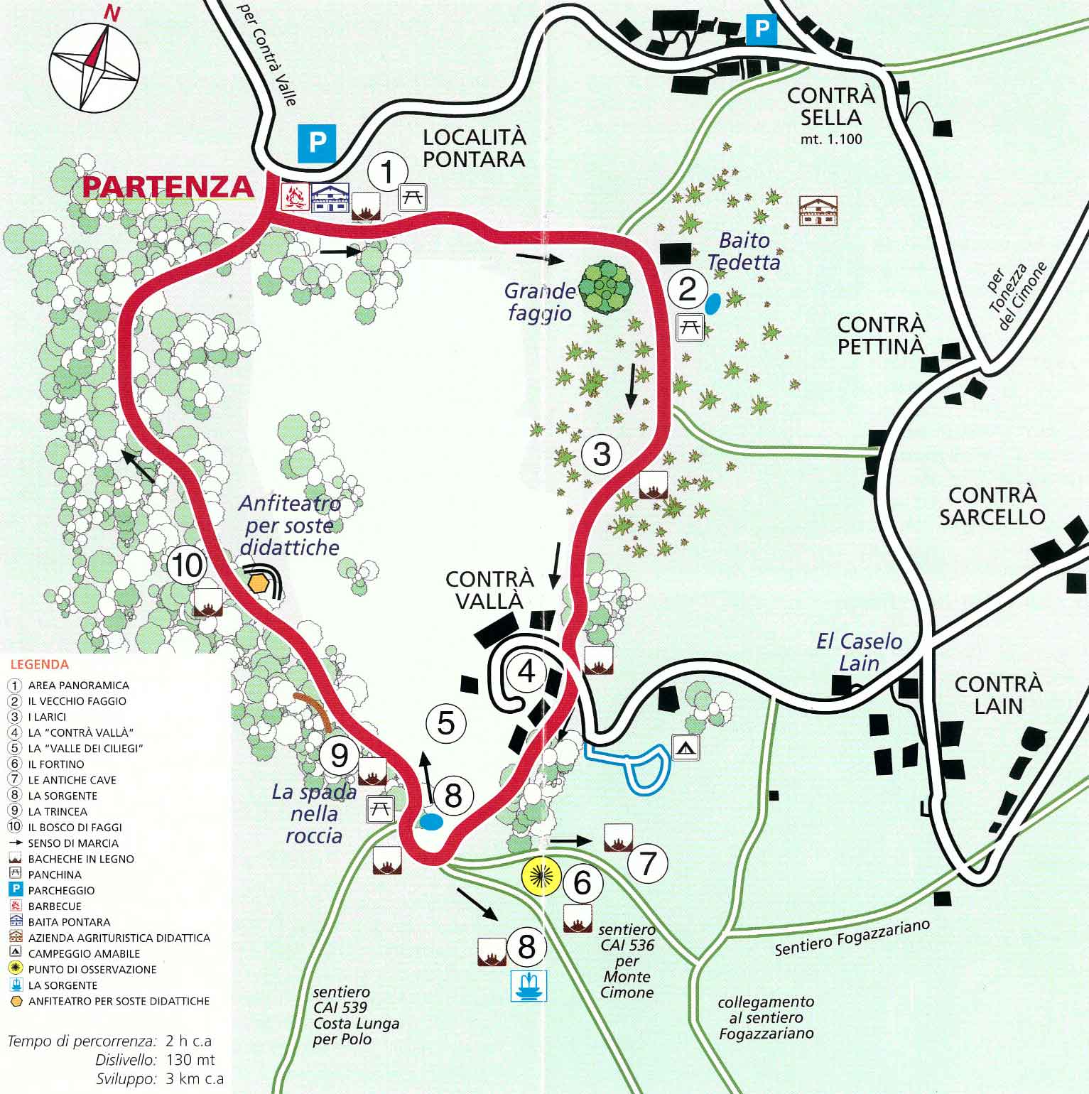 Si parte tra ampie distese prative dalle linee morbide e ondulate. In primavera, i pascoli cambiano volto: il croco punteggia l’erba come un mantello chiaro, mentre l’altopiano si apre e si interrompe in piccole valli dietro Contrà Vallà. Da qui, lo sguardo corre verso gli ampi pascoli di Malga Toraro, che si allungano fino a Monte Toraro, con un grande anfiteatro naturale che comprende anche le cime dei Monti Campomolon, Melegnone e lo Spitz di Tonezza.
